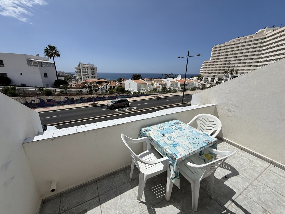 We are delighted to present this lovely studio apartment in the popular Garden City, Costa Adeje in a prime location on the complex. A bright and open property that is well-presented with an interior of 34.5M2 and a spacious terrace of 10m2. The apartment is well divided –In the main room you can find the living area which flows directly onto the terrace, enjoying sea views from the sofa. Next you can find the two single beds. Set towards the back of the property is the kitchen – it is large, fitted and of American style. The room is naturally lit, of good-size, also with a vanity and additional storage fitted in the hallway. A spacious, separate bathroom with storage and a shower. The terrace is sunny, spacious with outdoor furniture and views towards the sea. Garden City is a sought after complex with two communal pools, a pool bar and located in the heart of Costa Adeje.